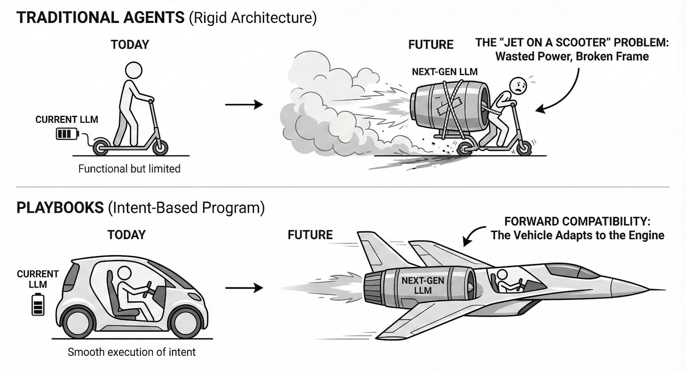 Why Playbooks programs automatically get better as LLMs improve - while traditional agent implementations waste money on capabilities they can’t use